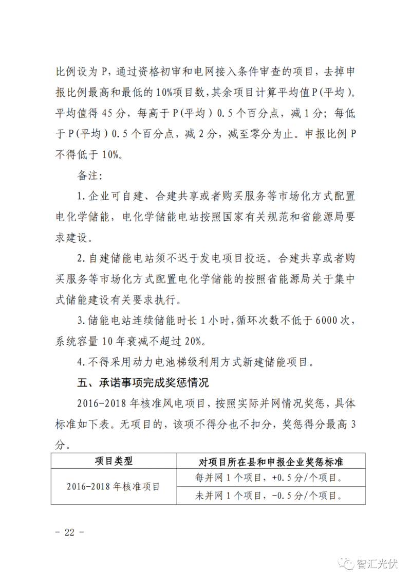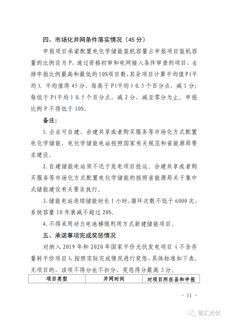 對于保障性規(guī)模,競爭性配置中未要求競電價、配置儲能項為45分,要求1小時、6000次。