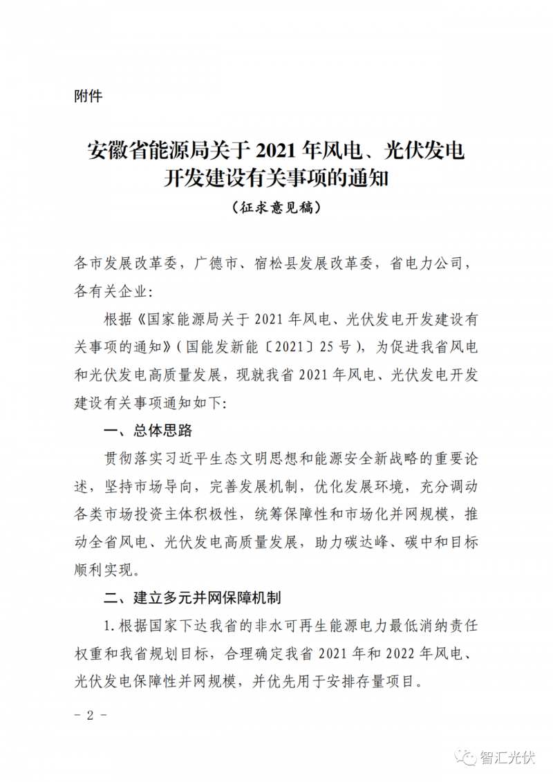 近日,安徽省能源局就《關(guān)于2021年風(fēng)電、光伏發(fā)電開發(fā)建設(shè)有關(guān)事項的通知(征求意見稿))》公開征求意見。