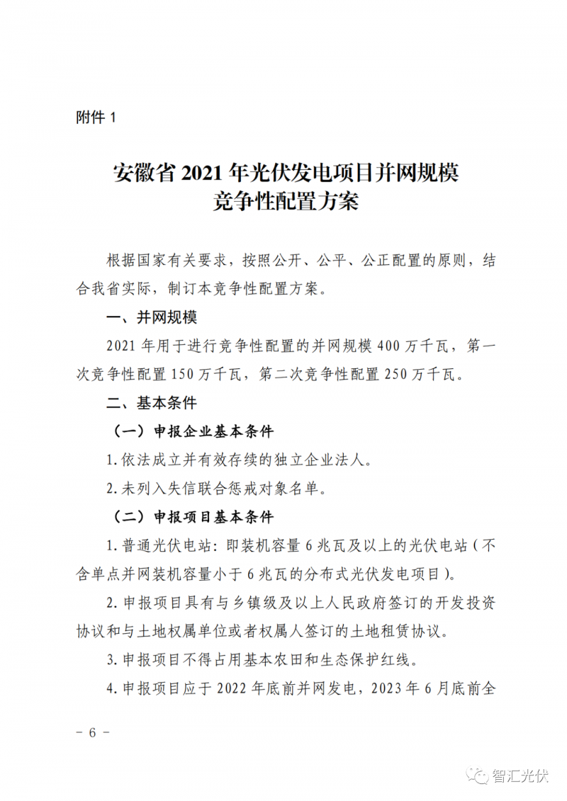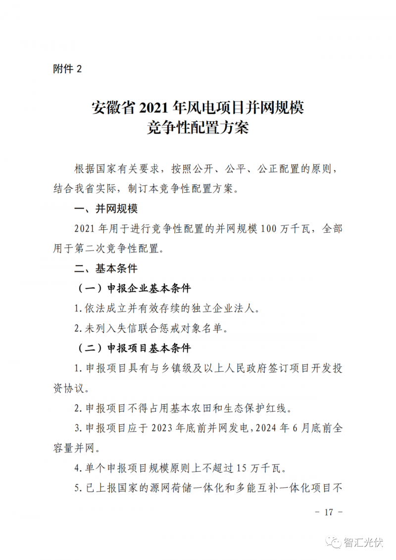 1)2021 年,安徽省此次共安排6GW保障性規(guī)模。其中,光伏4GW,風(fēng)電2GW,分兩次進行配置。