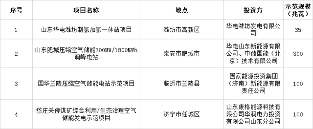 本此公布的示范項(xiàng)目總規(guī)模約達(dá)3.103GW,項(xiàng)目業(yè)主單位包括華能、大唐、華潤(rùn)、三峽、華電、國(guó)家能源集團(tuán)、國(guó)家電投、中核、中廣核、山東電工電氣、國(guó)網(wǎng)山東、特變電工等多家企業(yè)。除常規(guī)的鋰電池類項(xiàng)目外,此次還有壓縮空氣儲(chǔ)能、制氫加氫一體站、空氣儲(chǔ)能等新技術(shù)示范項(xiàng)目。