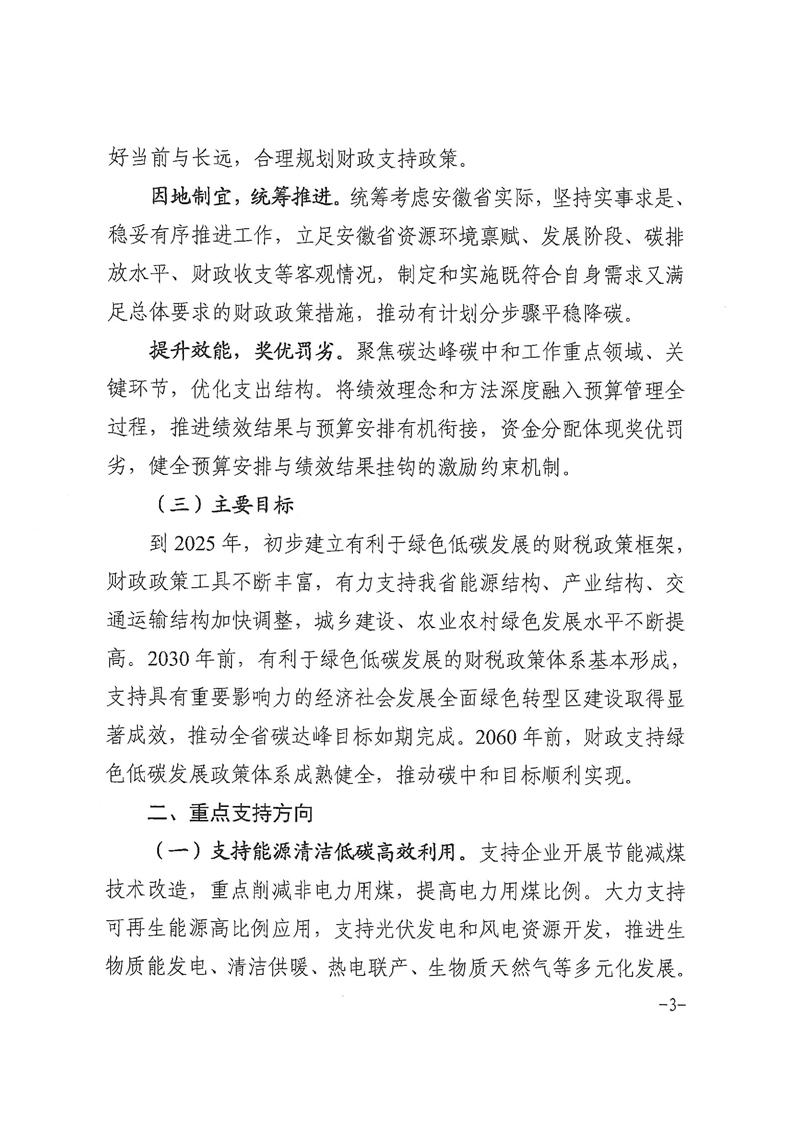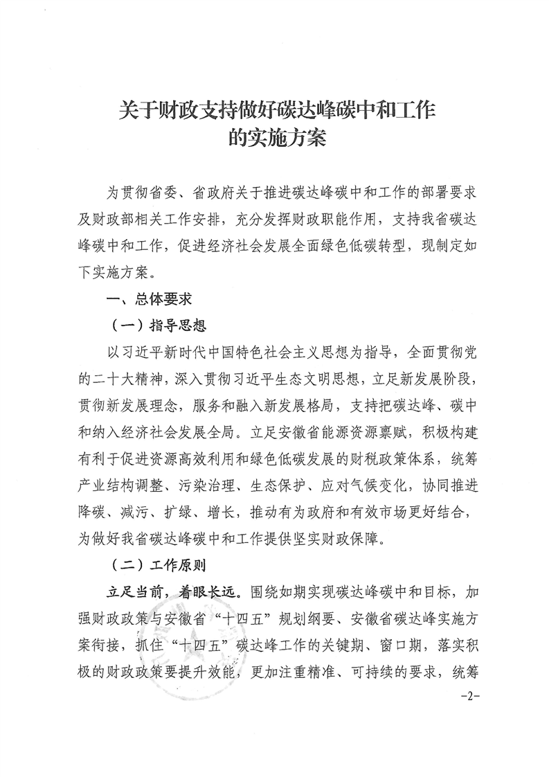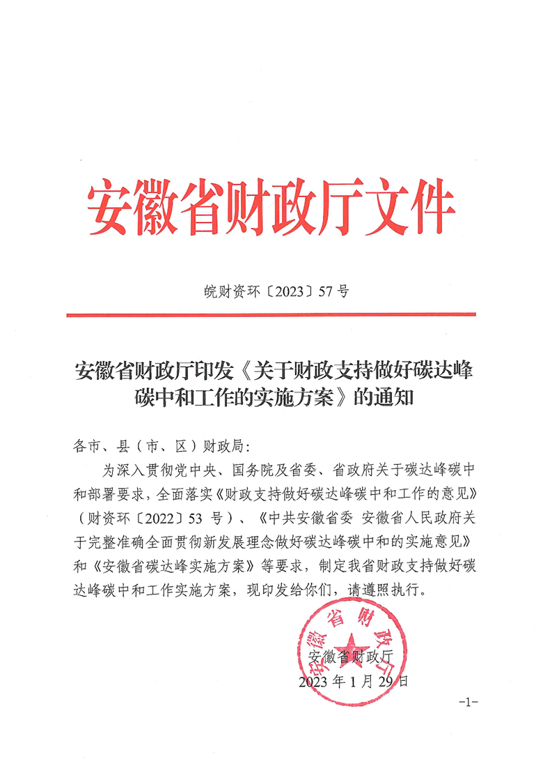 1月29日,安徽省財政廳印發(fā)《關(guān)于財政支持做好碳達峰碳中和工作的實施方案》的通知。