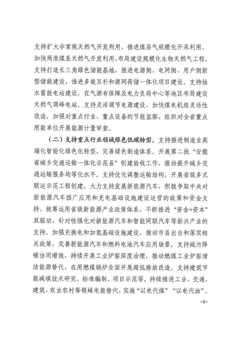 通知指出,支持企業(yè)開展節(jié)能減煤技術(shù)改造,重點削減非電力用煤,提高電力用煤比例。大力支持可再生能源高比例應(yīng)用,支持光伏發(fā)電和風(fēng)電資源開發(fā),推進生物質(zhì)能發(fā)電、清潔供暖、熱電聯(lián)產(chǎn)、生物質(zhì)天然氣等多元化發(fā)展。支持擴大非常規(guī)天然氣開發(fā)利用,推進煤層氣規(guī)?;_采利用,加快兩淮煤系天然氣開發(fā)利用,布局建設(shè)規(guī)?;锾烊粴夤こ?。支持打造長三角綠色儲能基地,推進電源側(cè)、電網(wǎng)側(cè)、用戶側(cè)新型儲能建設(shè),推進多能互補和源網(wǎng)荷儲一體化項目建設(shè)。支持抽水蓄能電站建設(shè),在氣源有保障及電力負荷中心等地區(qū)布局建設(shè)天然氣調(diào)峰電站。支持靈活調(diào)節(jié)電源建設(shè),加快煤電機組靈活性改造。加強對重點行業(yè)、重點設(shè)備的節(jié)能監(jiān)察,組織對全省重點用能單位開展能源計量審查。