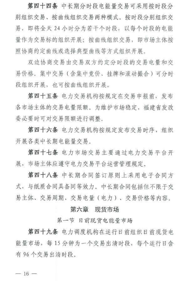 《福建電力市場(chǎng)運(yùn)營(yíng)基本規(guī)則(試行)》原文如下:
