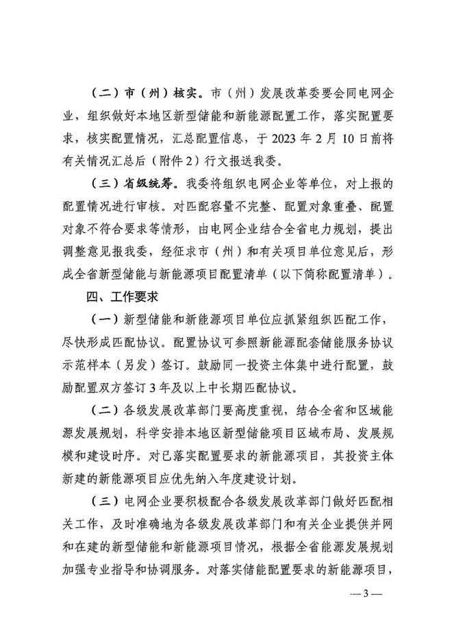 按照湖南發(fā)改委相關(guān)文件,新能源項(xiàng)目應(yīng)配置一定容量的新型儲(chǔ)能,于2022年12月底前,2023年6月底前全容量并網(wǎng)運(yùn)行的新型儲(chǔ)能試點(diǎn)項(xiàng)目分別按其裝機(jī)容量的1.5倍、1.3倍計(jì)算所配新能源容量。
