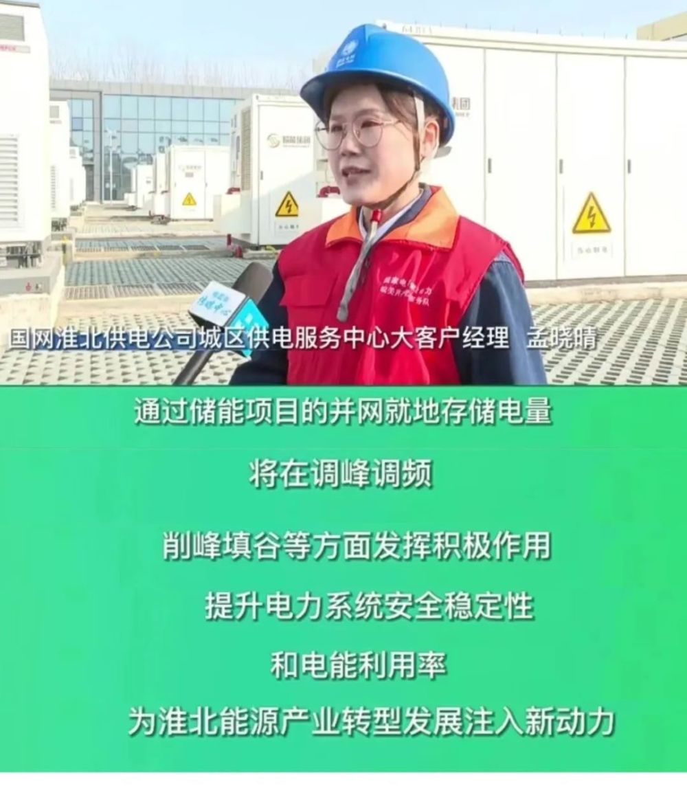 國網(wǎng)淮北供電公司工作人員在接受淮北市傳媒中心采訪時表示,通過儲能項目的并網(wǎng)就地存儲電量,將在調(diào)峰調(diào)頻、峰填谷等方面發(fā)揮積極作用,提升電力系統(tǒng)安全穩(wěn)定性和電能利用率,淮北能源產(chǎn)業(yè)轉型發(fā)展注入新動力。
