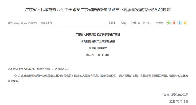 3月20日,廣東省人民政府辦公廳發(fā)布《廣東省推動新型儲能產(chǎn)業(yè)高質(zhì)量發(fā)展的指導(dǎo)意見》(以下簡稱《意見》)。《意見》指出,到2025年,廣東省新型儲能產(chǎn)業(yè)營業(yè)收入達到6000億元,年均增長50%以上,裝機規(guī)模達到300萬千瓦。到2027年,全省新型儲能產(chǎn)業(yè)營業(yè)收入達到1萬億元,裝機規(guī)模達到400萬千瓦。