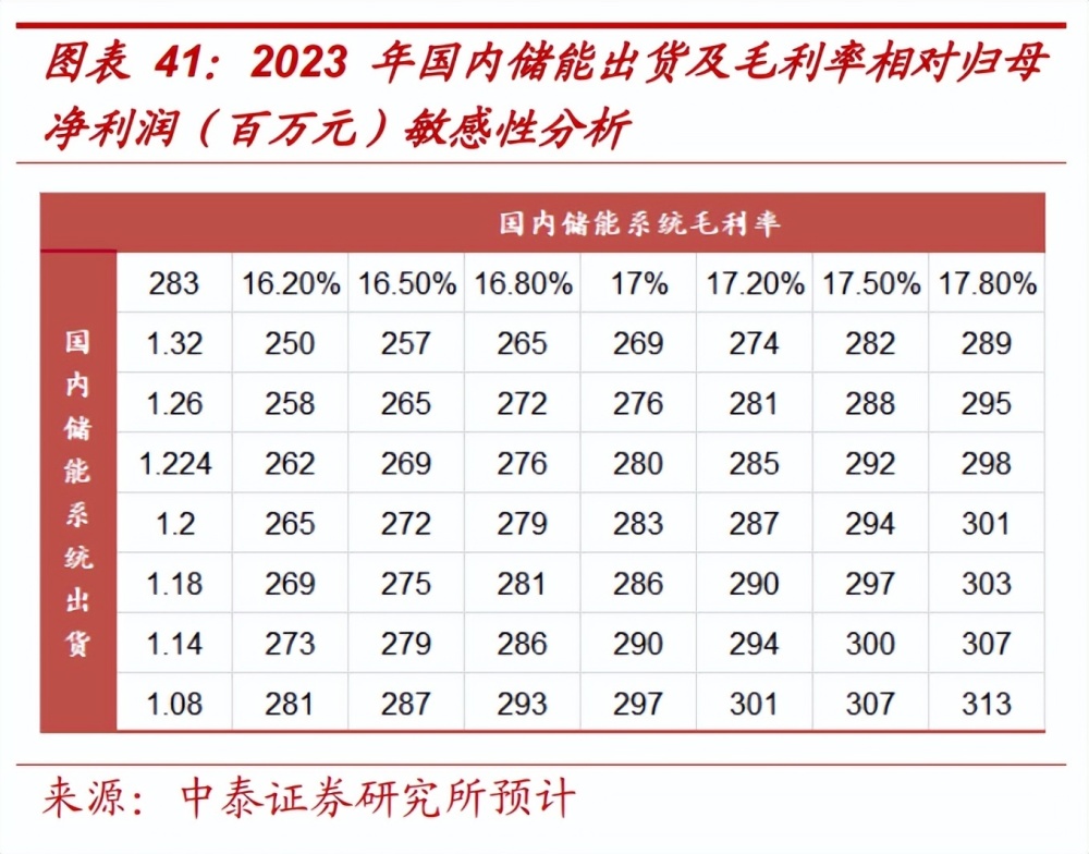 同時(shí),新產(chǎn)能逐步落地,2022 年 7 月, 公司宜春儲能生產(chǎn)基地一期年產(chǎn)能 3GWh 正式投產(chǎn),預(yù)計(jì)二期 5GW 產(chǎn) 能于 23 年底開始投產(chǎn),待項(xiàng)目滿產(chǎn)后總產(chǎn)能達(dá) 8GW。我們預(yù)計(jì) 22、23、 24 年國內(nèi)儲能系統(tǒng)出貨量分別為 0.06、1.20、2.40GWh,海外儲能系 統(tǒng)出貨量分別為 0.14、1.80、3.50GWh。因儲能系統(tǒng)價(jià)格調(diào)整滯后于電 池價(jià)格調(diào)整,在電池降價(jià)過程中儲能系統(tǒng)盈利提升,預(yù)計(jì)國內(nèi)的儲能業(yè) 務(wù)毛利率分別為 15%、17%、19%;海外較國內(nèi)毛利率略高。