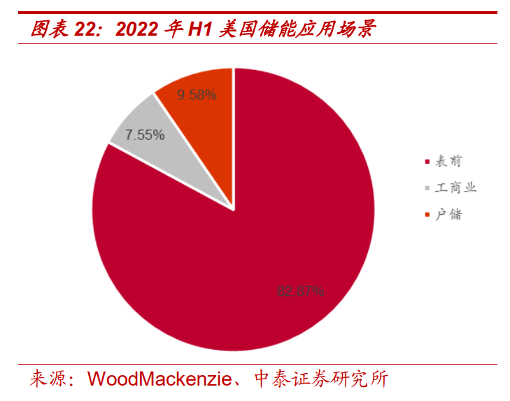 1) 美國:儲能維持高景氣,裝機(jī)量持續(xù)增長。新型儲能維持高增速,2022 年 H1 裝機(jī)量高企。根據(jù) CNESA 數(shù)據(jù)顯 示,2022H1 美國儲能新增規(guī)模達(dá) 2.3GW/5.9GWh,同比增長 188%、 157%。其中表前儲能貢獻(xiàn)了主要裝機(jī)量,2022H1 表前儲能新增裝機(jī) 量達(dá) 1.9GW/5.0GWh,工商業(yè)為 171MW/393MWh,戶儲為 217MW/ 517MWh。美國儲能產(chǎn)業(yè)機(jī)制成熟,預(yù)計(jì)將保持高景氣,根據(jù) WoodM ackenzie 預(yù)計(jì),美國 2023-2026 年新增裝機(jī)量分別為 28.4GWh、45. 6GWh、50.7GWh、52.4GWh,預(yù)計(jì) 2022-2026 年新增裝機(jī)量 CAGR 可達(dá) 40.36%。