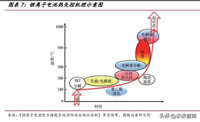 復(fù)雜的電池材料和密集系統(tǒng)結(jié)構(gòu)加大儲能熱管理難度。由于商業(yè)化儲能鋰離子 電池采用的是沸點低、易燃有機電解液,其電解質(zhì)材料熱值較高,當(dāng)電池本體或相關(guān) 電氣設(shè)備運行發(fā)生故障時,容易引發(fā)電池材料熱副反應(yīng),誘發(fā)電池?zé)崾Э亍6覂δ?系統(tǒng)中大量電池緊密排列在一個空間內(nèi),高低倍率交錯運行,容易造成熱量聚集、溫 度分布不均勻、電池間溫差較大等問題,導(dǎo)致電池的性能、容量和壽命下降,發(fā)生連 鎖反應(yīng),甚至引發(fā)熱失控,誘發(fā)安全事故。