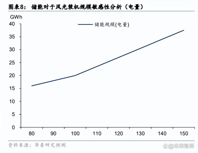 市場化并網(wǎng)項(xiàng)目配儲要求更高,后續(xù)儲能裝機(jī)增速預(yù)計(jì)將高于新能源增速。經(jīng)過我們預(yù)測, 在所有電站均為平價(jià)電站,保障性并網(wǎng)項(xiàng)目配儲 10%,儲能時(shí)長 2 小時(shí),市場化并網(wǎng)項(xiàng)目 配儲 15-20%,儲能時(shí)長 4 小時(shí),全國保障性并網(wǎng)項(xiàng)目總規(guī)模 100GW 的假設(shè)下,風(fēng)光并網(wǎng) 總規(guī)模超過 100GW 后,儲能規(guī)模隨著風(fēng)光并網(wǎng)規(guī)模增長的速度將加快。具體到市場化并網(wǎng) 項(xiàng)目配儲 17.5%時(shí),當(dāng)風(fēng)光并網(wǎng)規(guī)模低于 100GW,并網(wǎng)規(guī)模每增加 10GW 儲能規(guī)模將增 加 1GW,當(dāng)風(fēng)光規(guī)模高于 100GW,并網(wǎng)規(guī)模每增加 10GW 儲能規(guī)模將增加 1.75GW。