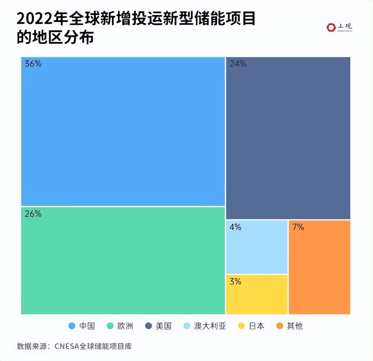 中國(guó)也是全球儲(chǔ)能市場(chǎng)發(fā)展的主力軍。據(jù)統(tǒng)計(jì),在全球已投運(yùn)電力儲(chǔ)能項(xiàng)目累計(jì)裝機(jī)規(guī)模中,2022年中國(guó)占四分之一,且依舊保持著較高的年增長(zhǎng)率(38%)。2022年,以鋰電池儲(chǔ)能為代表的新型儲(chǔ)能在中國(guó)新增7.3吉瓦/15.9吉瓦時(shí),占比全球第一(36%)。