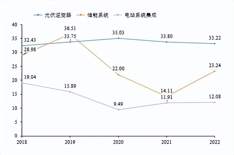 圖表 19:2018-2022年陽光電源主要業(yè)務毛利趨勢 單位:%