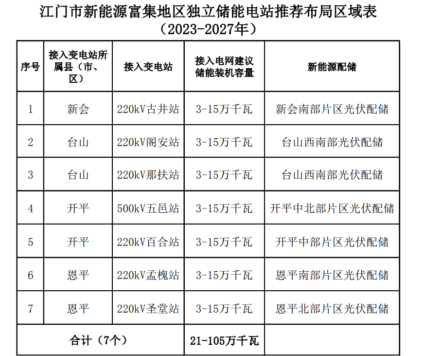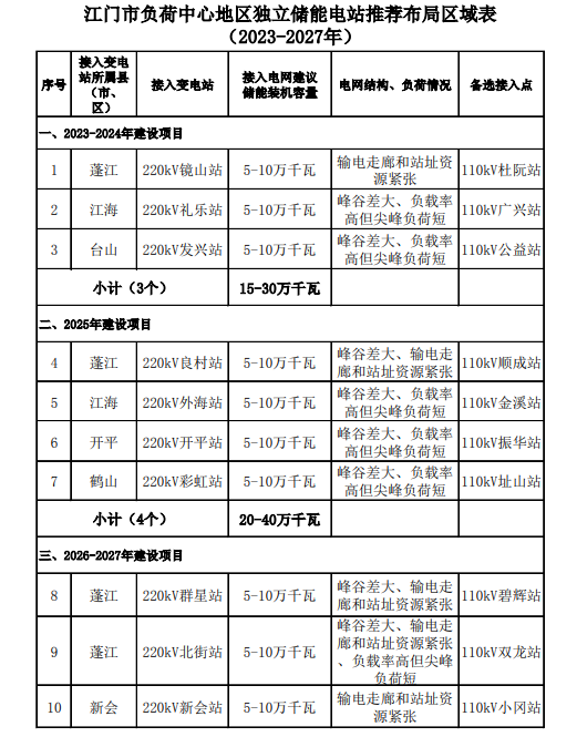 江門發(fā)展改革局印發(fā)《江門市新型儲(chǔ)能電站項(xiàng)目推薦布局實(shí)施方案(2023-2027 年)》(簡稱:《方案》)。
