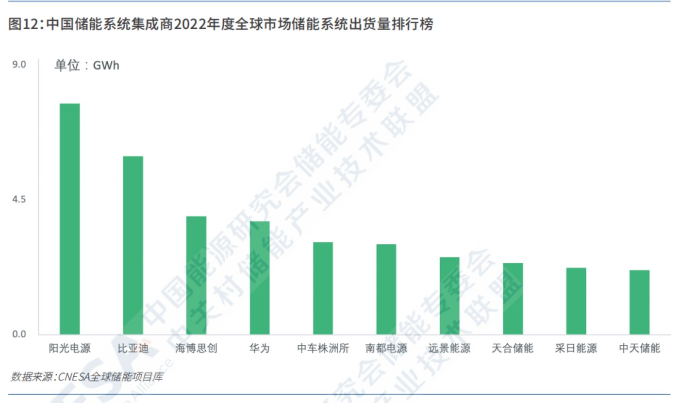 比亞迪也占據(jù)2022年度全球市場(chǎng)儲(chǔ)能系統(tǒng)出貨量榜單的第2名,華為第4。