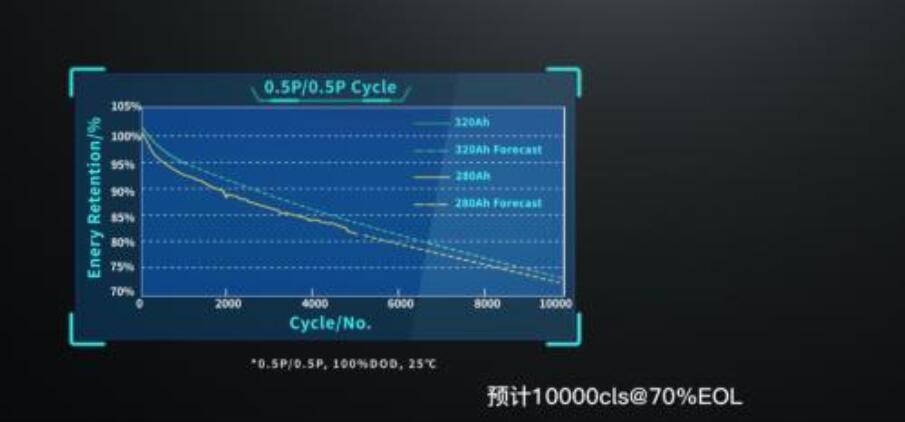 2023年4月,公司進一步推出320Ah新一代電力儲能專用電池,其能量密度≥175Wh/kg,循環(huán)壽命達10000cls。