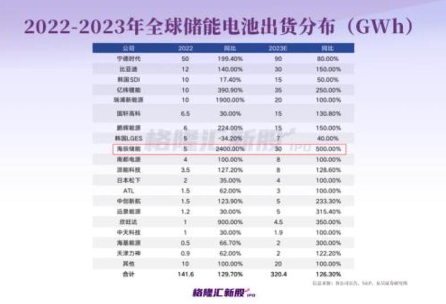 海辰儲能相關人士曾在采訪時表示,預計2023年將維持較高的增速,預期全年出貨量突破25GWh,旨在保持中國電力儲能電池交付量第一,并爭取在出貨量排名中躋身前三。