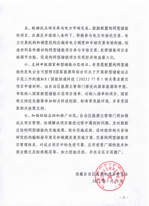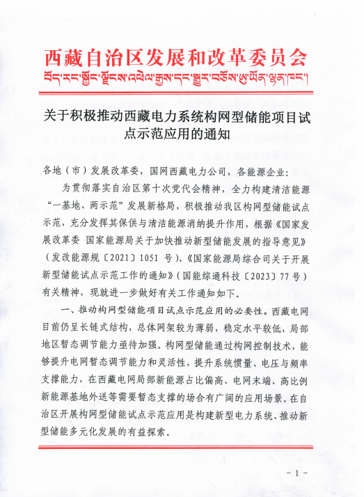 7月24日,西藏自治區(qū)發(fā)展和改革委員會(huì)印發(fā)關(guān)于積極推動(dòng)西藏電力系統(tǒng)構(gòu)網(wǎng)型儲(chǔ)能項(xiàng)目試點(diǎn)應(yīng)用的通知(以下簡(jiǎn)稱“通知”)。