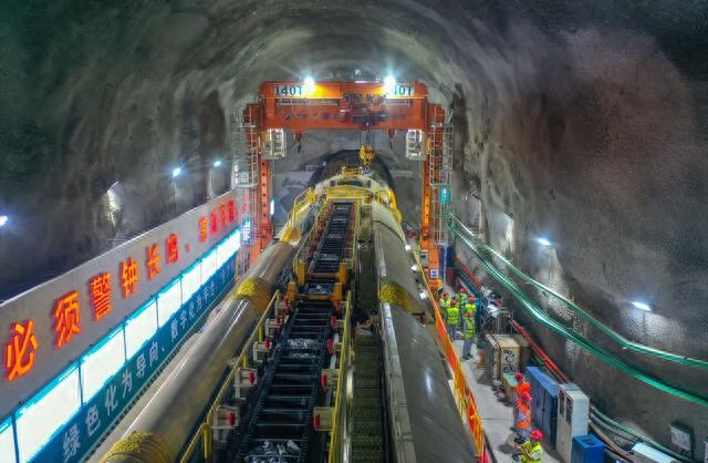 “天岳號”總長87米、總重約900噸。施工作業(yè)時,“天岳號”沿50度大傾角由下斜井往上爬行掘進,在中平洞實現(xiàn)6.53米和8米變徑,最終從上斜井駛出,可實現(xiàn)兩級引水斜井全斷面連續(xù)開挖、初支一次成型。此次“天岳號”成功應(yīng)用,有助于我國抽水蓄能電站綠色智能建造。