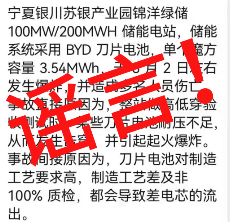 對(duì)此,比亞迪儲(chǔ)能回應(yīng)稱,經(jīng)核實(shí),該項(xiàng)目從未發(fā)生過起火、爆炸和人員死亡事故,網(wǎng)傳信息系惡意拼接的謠言。