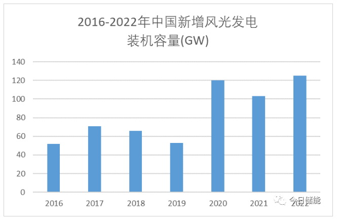 中國(guó)新增風(fēng)光發(fā)電裝機(jī)容量圖 (數(shù)據(jù)來源:國(guó)家能源局、中電聯(lián),iFinD)