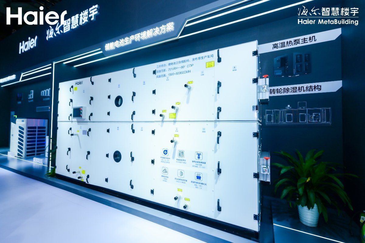 展會(huì)現(xiàn)場(chǎng),海爾智慧樓宇儲(chǔ)能溫控產(chǎn)品設(shè)計(jì)總監(jiān)王軍分享了其儲(chǔ)能全產(chǎn)業(yè)鏈解決方案,屬行業(yè)首例。具體來看,在儲(chǔ)能電池生產(chǎn)場(chǎng)景中,推出轉(zhuǎn)輪除濕+高溫?zé)岜迷偕囊惑w式熱回收集成方案,達(dá)到-40℃到-80℃的露點(diǎn)溫度,保障安全的生產(chǎn)環(huán)境。此外,該方案中應(yīng)用的熱泵技術(shù)更加節(jié)能環(huán)保,實(shí)現(xiàn)系統(tǒng)節(jié)能50%,也降低了企業(yè)運(yùn)行成本。