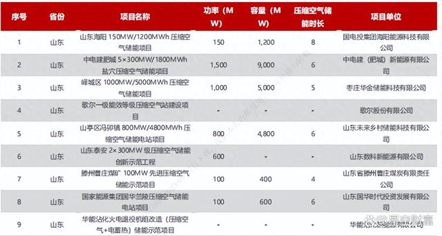部分壓縮空氣儲(chǔ)能情況