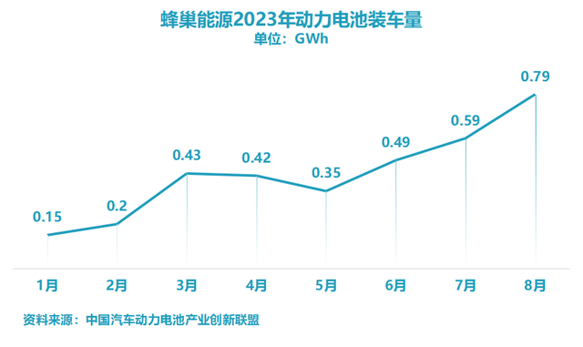好在,6月開始,蜂巢能源重拾升勢(shì),一個(gè)月一臺(tái)階。8月,蜂巢能源裝車量0.79GWh,排名國(guó)內(nèi)第六。1-8月,蜂巢能源總裝車3.42GWh,已經(jīng)追平2022年,排名國(guó)內(nèi)第八。