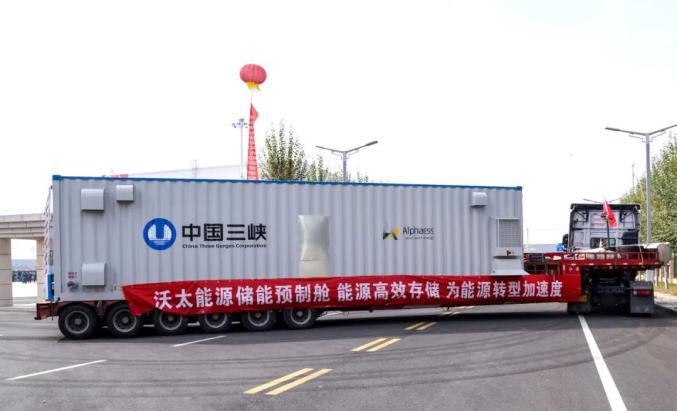 10月17日,在三峽現(xiàn)代能源創(chuàng)新示范園內(nèi),隨著2輛裝載儲(chǔ)能預(yù)制艙的裝備物流車緩緩駛出,標(biāo)志著沃太能源儲(chǔ)能系統(tǒng)首套預(yù)制艙正式下線。副市長方澤出席下線儀式。