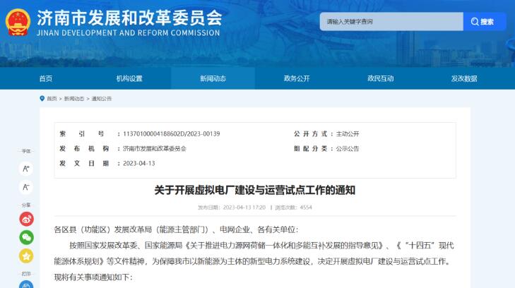 濟(jì)南開展虛擬電廠建設(shè)運(yùn)營(yíng)試點(diǎn)工作 來(lái)源:濟(jì)南市發(fā)改委