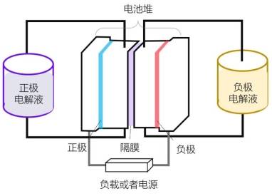 液流電池作為電化學(xué)儲能技術(shù)之一,其將陰陽極電解液分別通過管路推入電堆中,通過活性元素的價態(tài)變化,在電能和化學(xué)能之間產(chǎn)生轉(zhuǎn)換來實(shí)現(xiàn)充放電。由于液流電池是將能量儲存于水性電解液中,且能量轉(zhuǎn)化不依賴于固體電極,因此沒有燃燒爆炸的風(fēng)險,符合儲能的安全需求。