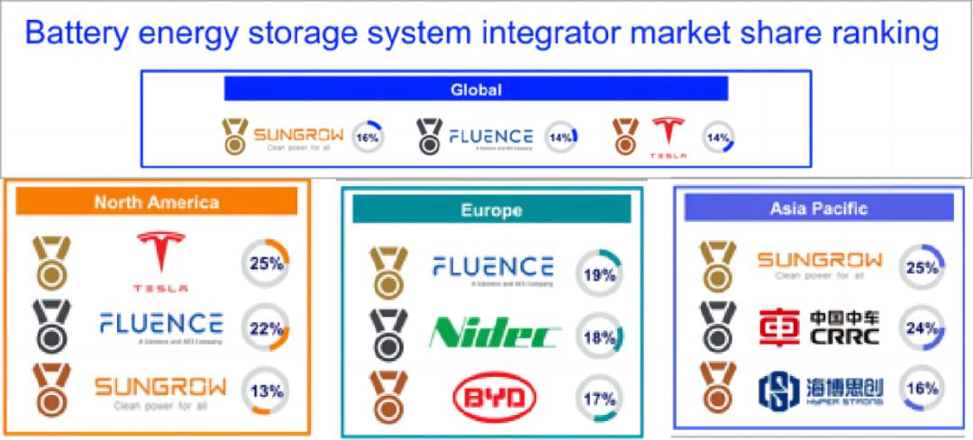 來源:Wood Mackenzie; 排 名基于2022年儲(chǔ)能系統(tǒng)集成商的shipment numbers; 涵蓋大儲(chǔ)、戶儲(chǔ)和工商業(yè)場(chǎng)景