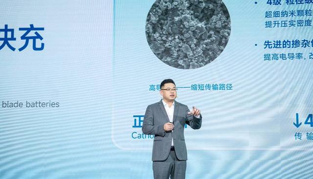 在短刀上實(shí)現(xiàn)快充,背后是電池工藝和設(shè)計(jì)上的又一次突破。例如電池的正極部分,采用的摻雜包覆技術(shù),離子傳輸路徑降低了40%,電阻降低了10%;負(fù)極采用的表面技術(shù)和一次顆粒、二次顆粒的搭配技術(shù),以及吸液性更好的添加劑,讓動(dòng)力性能得到了提升;再包括電解液使用的新材料,以及類似于全極耳的直焊工藝,讓載流面積更大,最終讓短刀快充成為了可能。
