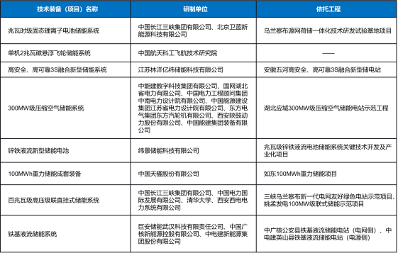 圖:第三批能源領(lǐng)域首臺(套)重大技術(shù)裝備(項目)名單——新型儲能