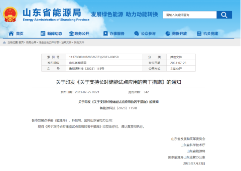 2023年7月,山東省出臺《關(guān)于支持長時儲能試點應(yīng)用的若干措施》,要求試點項目規(guī)模不低于10萬千瓦,滿功率放電時長不低于4小時,這是國內(nèi)首個支持長時儲能發(fā)展的地方性專項政策,長時儲能可享受優(yōu)先接入電網(wǎng)、優(yōu)先租賃、容量補償標準提高、減免輸配電價等優(yōu)惠政策。