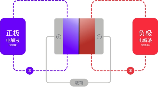 圖:液流電池運(yùn)行原理