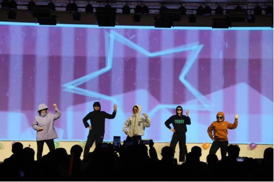 晚會以“儲能乘風(fēng)語龍韻,新歲破浪啟華章”為主題,節(jié)目精彩紛呈。一曲充滿青春活力的舞蹈《WANNA BE》拉開晚會序幕。周玥等青年教師表演的舞蹈贏得了一片掌聲和歡笑聲。朗誦《百年交響》