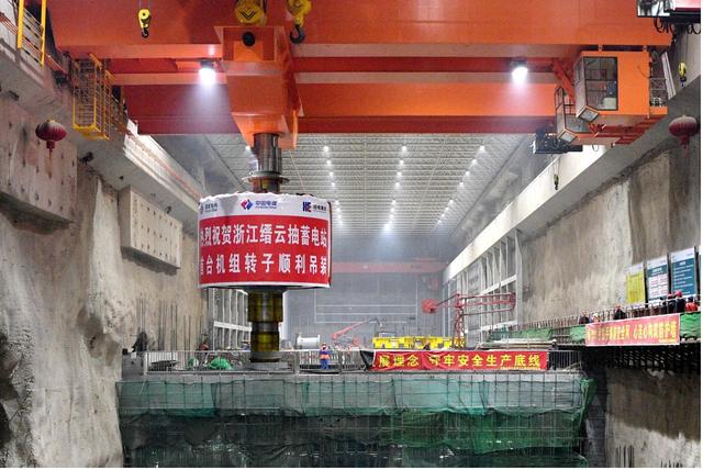 1月3日,國網(wǎng)新源浙江縉云抽水蓄能電站首臺(tái)機(jī)組轉(zhuǎn)子在兩臺(tái)250噸橋機(jī)合力吊裝下,跨越5個(gè)機(jī)坑,順利落入首臺(tái)機(jī)組機(jī)坑處。該電站首臺(tái)機(jī)組轉(zhuǎn)子的順利吊裝,標(biāo)志著首臺(tái)機(jī)組大件設(shè)備吊裝結(jié)束,正式進(jìn)入總裝階段。