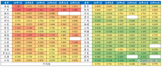 2023年下半年國內(nèi)各省月度峰谷價差統(tǒng)