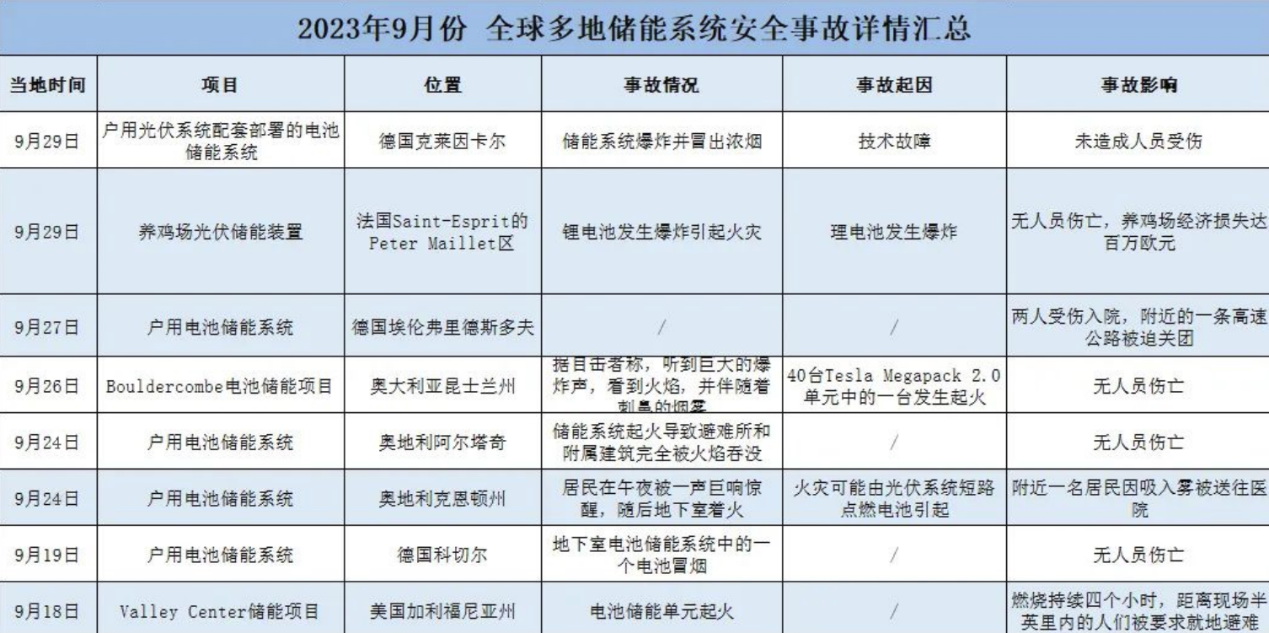 據(jù)不完全統(tǒng)計(jì),僅9月下半月,全球就發(fā)生了8起儲(chǔ)能系統(tǒng)起火及爆炸事故。接連不斷的儲(chǔ)能電池起火事件,讓儲(chǔ)能安全警鐘再次拉響。