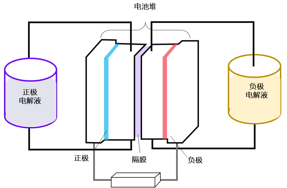 其次,從運(yùn)行原理上來看,液流電池的電解液,儲(chǔ)存在電池堆外的罐中。充放電時(shí),正負(fù)極電解質(zhì)會(huì)分別從循環(huán)泵進(jìn)入電池堆,發(fā)生氧化反應(yīng),反應(yīng)完成后,電解液會(huì)被重新泵回罐體中,照此循環(huán)往復(fù),直到反應(yīng)完全。由于電化學(xué)反應(yīng)和整個(gè)充放電過程,都是在水性的條件下發(fā)生,沒有燃燒爆炸的風(fēng)險(xiǎn),可確保絕對安全。