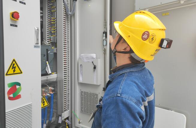 工作人員對(duì)儲(chǔ)能電站設(shè)備巡視檢查(金沙縣融媒體中心供圖)
