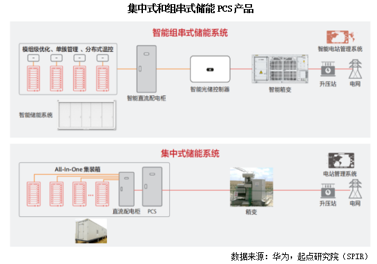 儲(chǔ)能PCS產(chǎn)品可以分為集中式、組串式、微型逆變器、儲(chǔ)能變流器及一體機(jī)等類型。根據(jù)儲(chǔ)能PCS的應(yīng)用場景可以分為組串式和集中式兩大類,其中組串式主要應(yīng)用于中小型儲(chǔ)能系統(tǒng),集中式應(yīng)用于大型儲(chǔ)能系統(tǒng),產(chǎn)品形態(tài)適應(yīng)源/網(wǎng)/荷側(cè)多種場景。不同應(yīng)用場景對于儲(chǔ)能PCS的功能以及性能參數(shù)等的需求差異較大,因此針對不同的場景需要應(yīng)用不同技術(shù)類型的儲(chǔ)能PCS。