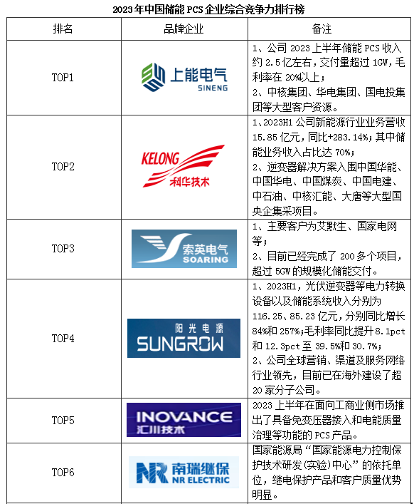 中國儲(chǔ)能逆變器(PCS)行業(yè)重點(diǎn)企業(yè):