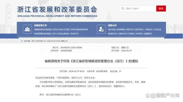 2月7日,浙江省能源局印發(fā)《浙江省新型儲(chǔ)能項(xiàng)目管理辦法(試行)》(以下簡(jiǎn)稱(chēng)《管理辦法》),文件為規(guī)范浙江省新型儲(chǔ)能項(xiàng)目管理,促進(jìn)新型儲(chǔ)能安全、有序、健康發(fā)展。