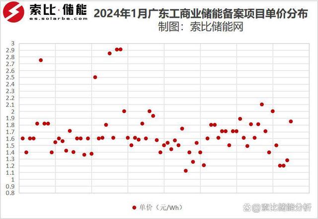 從項目類備案的整體投資單價來看,去除含光伏和充電樁等的一體化項目的備案,投資單價集中在1.125-2.9元/Wh。