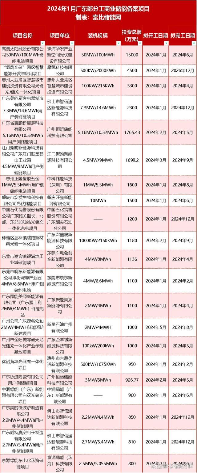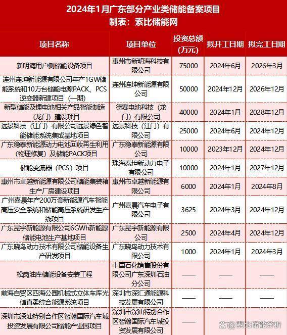 1月,廣東省完成的13個產(chǎn)業(yè)類項目涉及儲能系統(tǒng)集成、鋰電池、PACK產(chǎn)線、儲能變流器、儲能集裝箱等儲能產(chǎn)業(yè)鏈的多個領(lǐng)域。其中有明確信息的10個項目中,投資額過億的有6個,新明海用戶側(cè)儲能設(shè)備項目金額最大,達7.5億元,該項目搭建了一條年設(shè)計產(chǎn)能約100萬臺/套的便攜式儲能電源、商用/戶用儲能電源等產(chǎn)品的生產(chǎn)線。