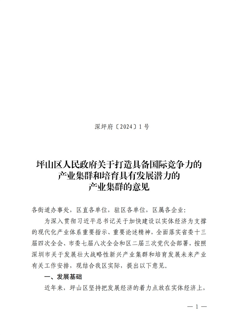 為深入貫徹習(xí)近平總書記關(guān)于加快建設(shè)以實(shí)體經(jīng)濟(jì)為支撐的現(xiàn)代化產(chǎn)業(yè)體系重要指示、重要論述精神,全面落實(shí)省委十三屆四次全會(huì)、市委七屆八次全會(huì)和區(qū)二屆三次黨代會(huì)部署,按照深圳市關(guān)于發(fā)展壯大戰(zhàn)略性新興產(chǎn)業(yè)集群和培育發(fā)展未來(lái)產(chǎn)業(yè)有關(guān)工作安排,現(xiàn)結(jié)合我區(qū)實(shí)際,提出以下意見(詳見附件)。