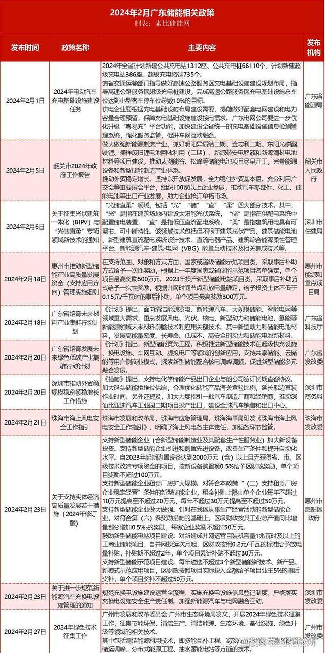 政策類型涉及發(fā)展規(guī)劃、監(jiān)督管理、技術(shù)研發(fā)和產(chǎn)業(yè)發(fā)展以及充換電設(shè)施及新能源汽車等,其中在2月18日發(fā)布的《惠州市推動(dòng)新型儲(chǔ)能產(chǎn)業(yè)高質(zhì)量發(fā)展資金(支持應(yīng)用方向)管理實(shí)施細(xì)則》中提到,在支持范圍、對(duì)象和方式方面,國家或省級(jí)儲(chǔ)能示范項(xiàng)目類,采取事后補(bǔ)助方式給予一次性獎(jiǎng)勵(lì),根據(jù)上一年度國家或省儲(chǔ)能示范項(xiàng)目名單確定,單個(gè)項(xiàng)目最高獎(jiǎng)勵(lì)500萬元。