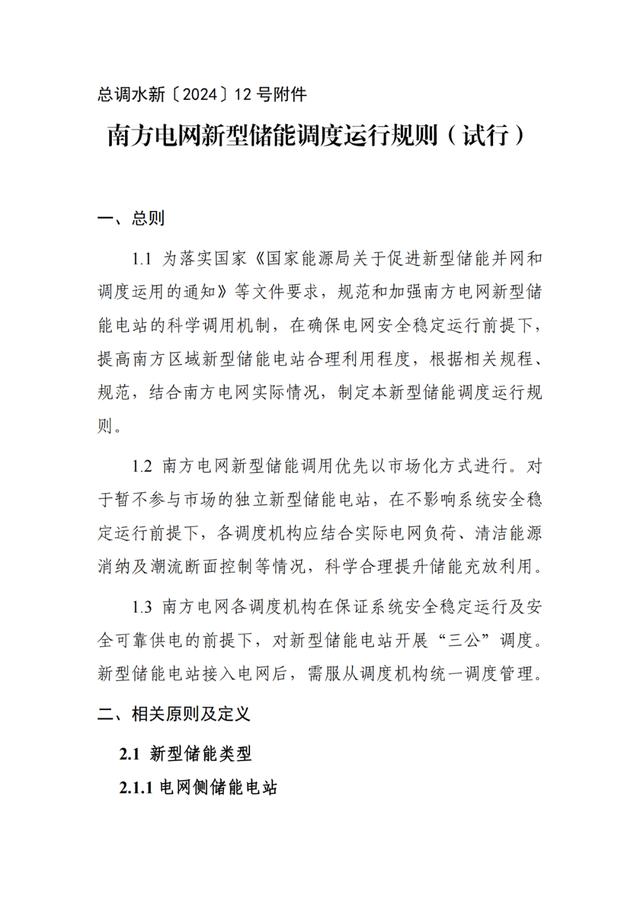 南方電網(wǎng)新型儲能調(diào)度運(yùn)行規(guī)則(試行)
