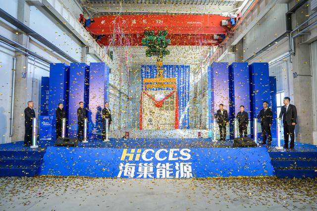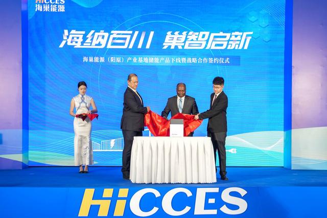 簽約儀式后,與會(huì)嘉賓為首臺(tái)海巢能源(陽(yáng)原)儲(chǔ)能系統(tǒng)產(chǎn)品下線(xiàn)揭幕并實(shí)地參觀了生產(chǎn)車(chē)間。